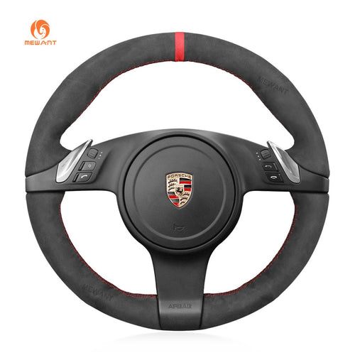 MEWANT Alcantara Auto-Lenkradbezug für Porsche 911 718 Boxster Cayman 718 Spyder 918 Spyder Cayenne Macan Panamera