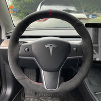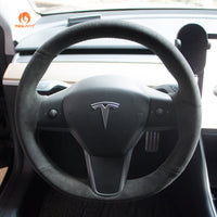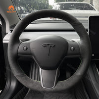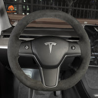 MEWANT Hand Stitch Alcantara Car Steering Wheel Cover for Tesla Model 3 2017-2020 / Model Y 2020-2021 - Mewant Cover