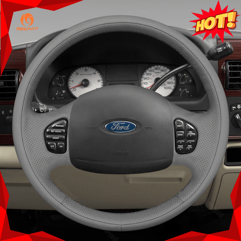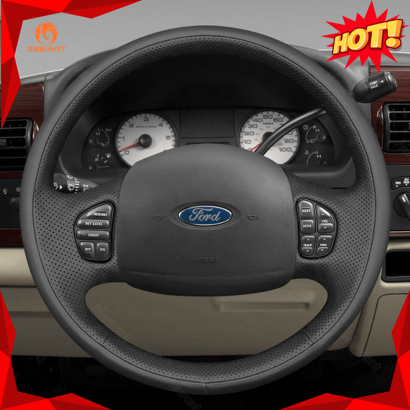 MEWANT Genuine Leather Car Steering Wheel Cove for Ford F150 F250 F350 2004-2008