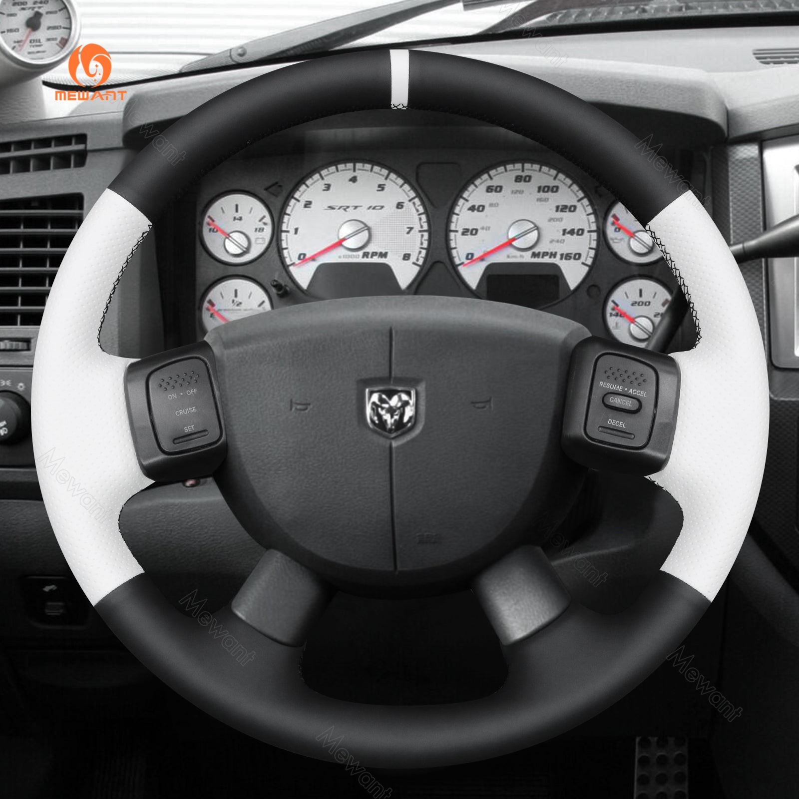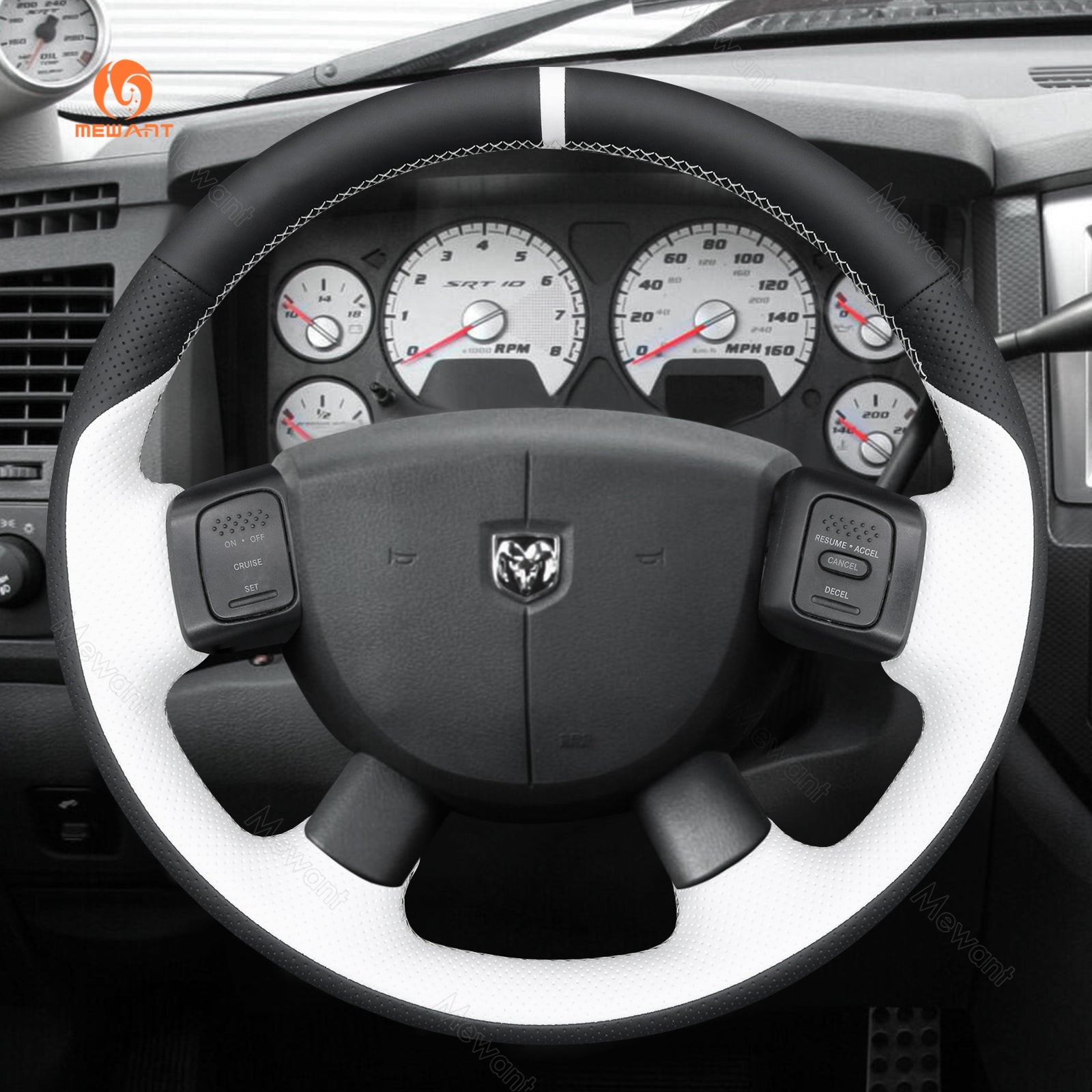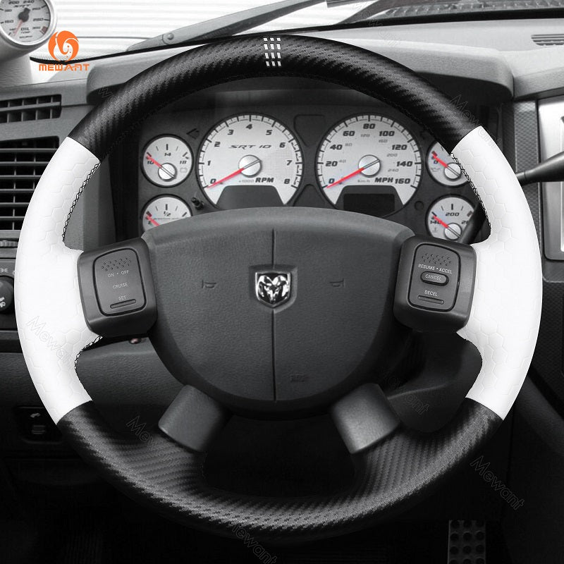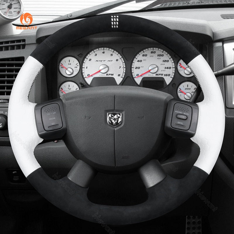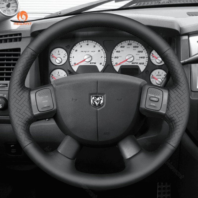 MEWANT Genuine Leather Car Steering Wheel Cove for Dodge Ram 1500 2500 3500 2004-2008