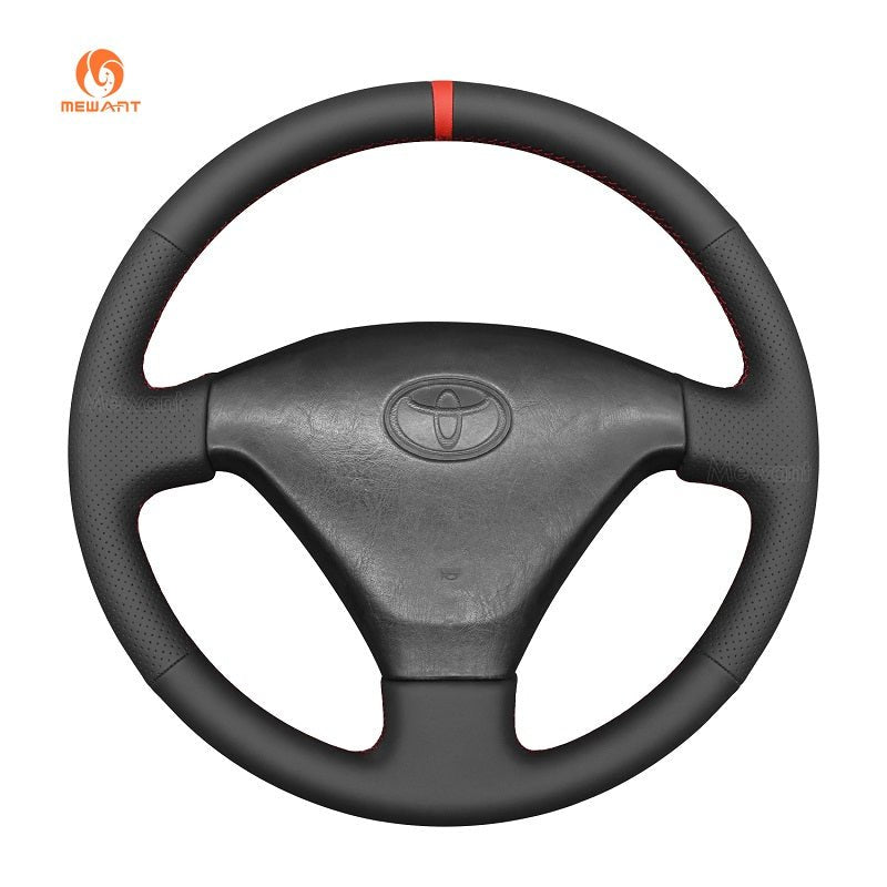 MEWANT Black Leather Suede Car Steering Wheel Cover for Toyota Land Cruiser Prado 1996-2002