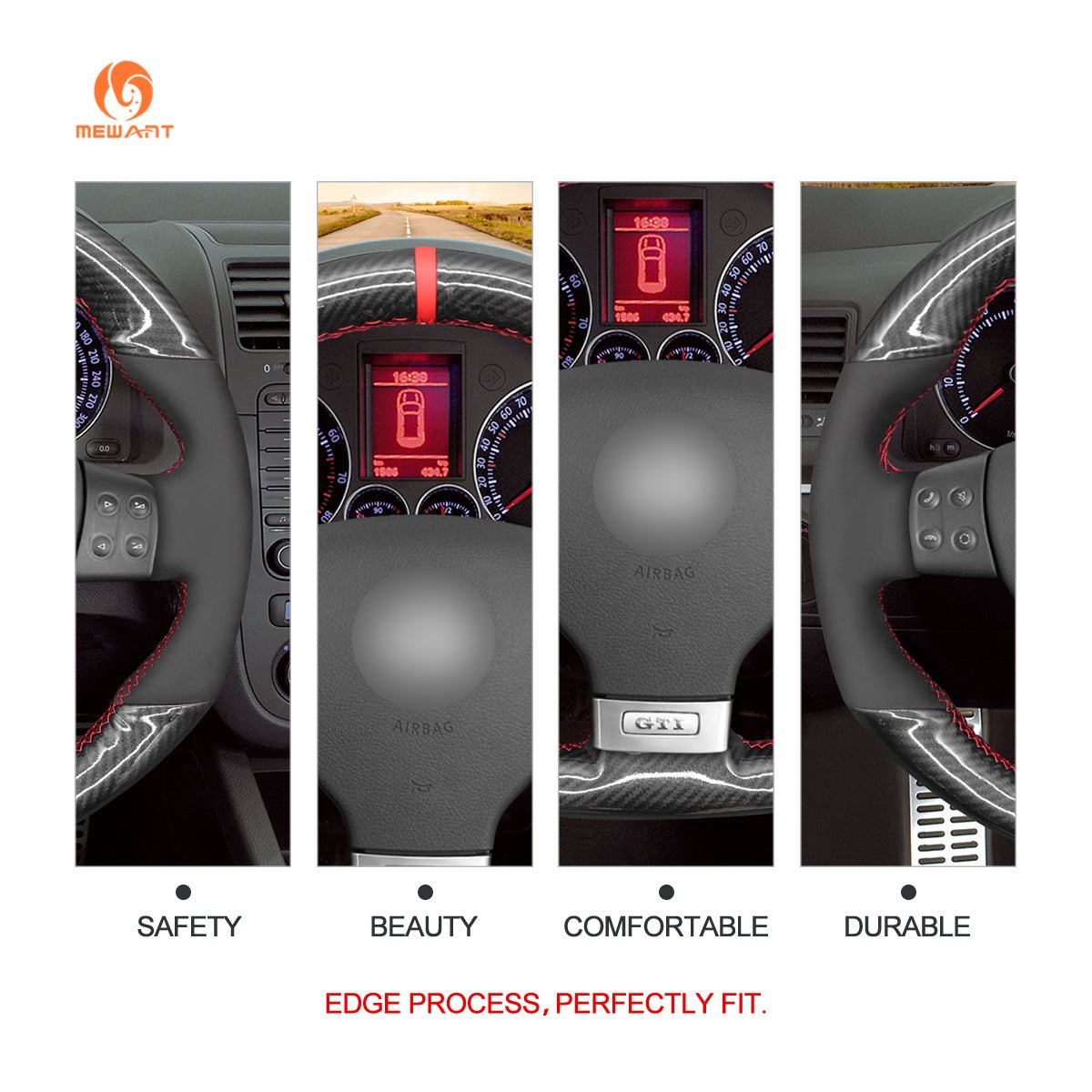 This steering wheel cover suitable forGolf GTI 5 (V) 2004-2008 /Golf R32 2005-2009 Scirocco 2008-2009 / Passat Variant (R-Line) 2005-2010 / Tiguan (R-Line) 2007-2010, just for reference.