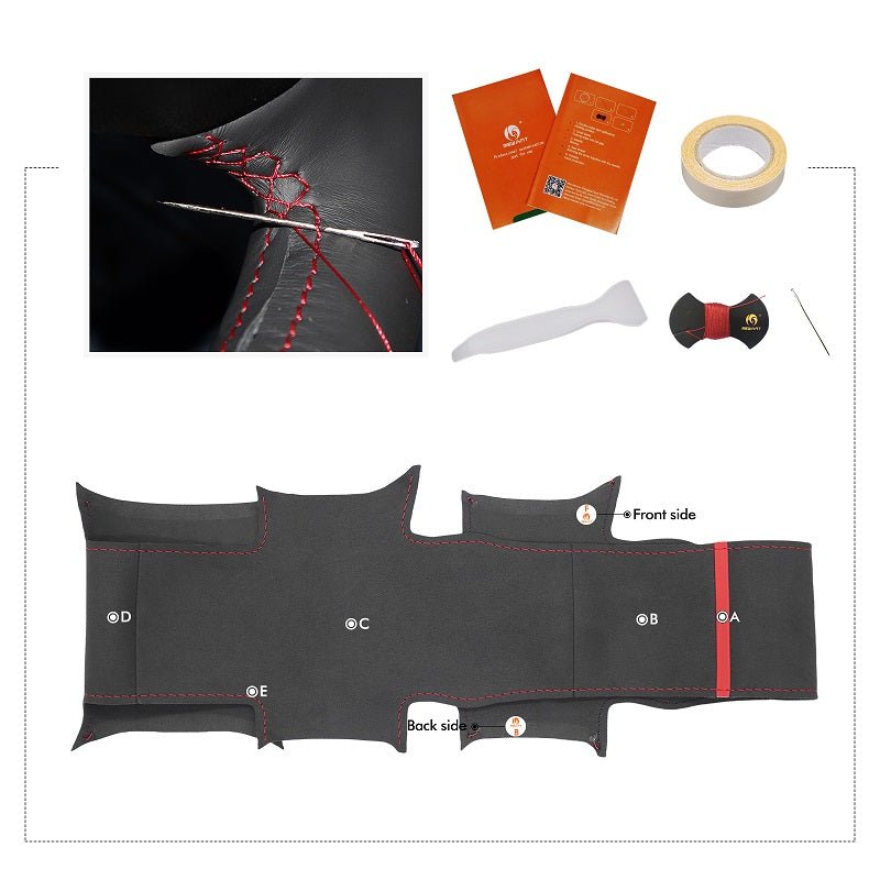 Black Alcantara+Black Perforated Alcantara With Red Layer+3M Stripe+3M Thread